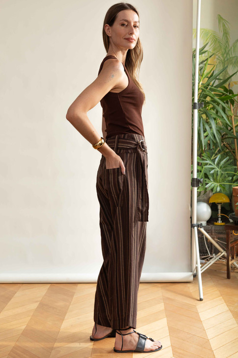 calça HERA listrada chocolate