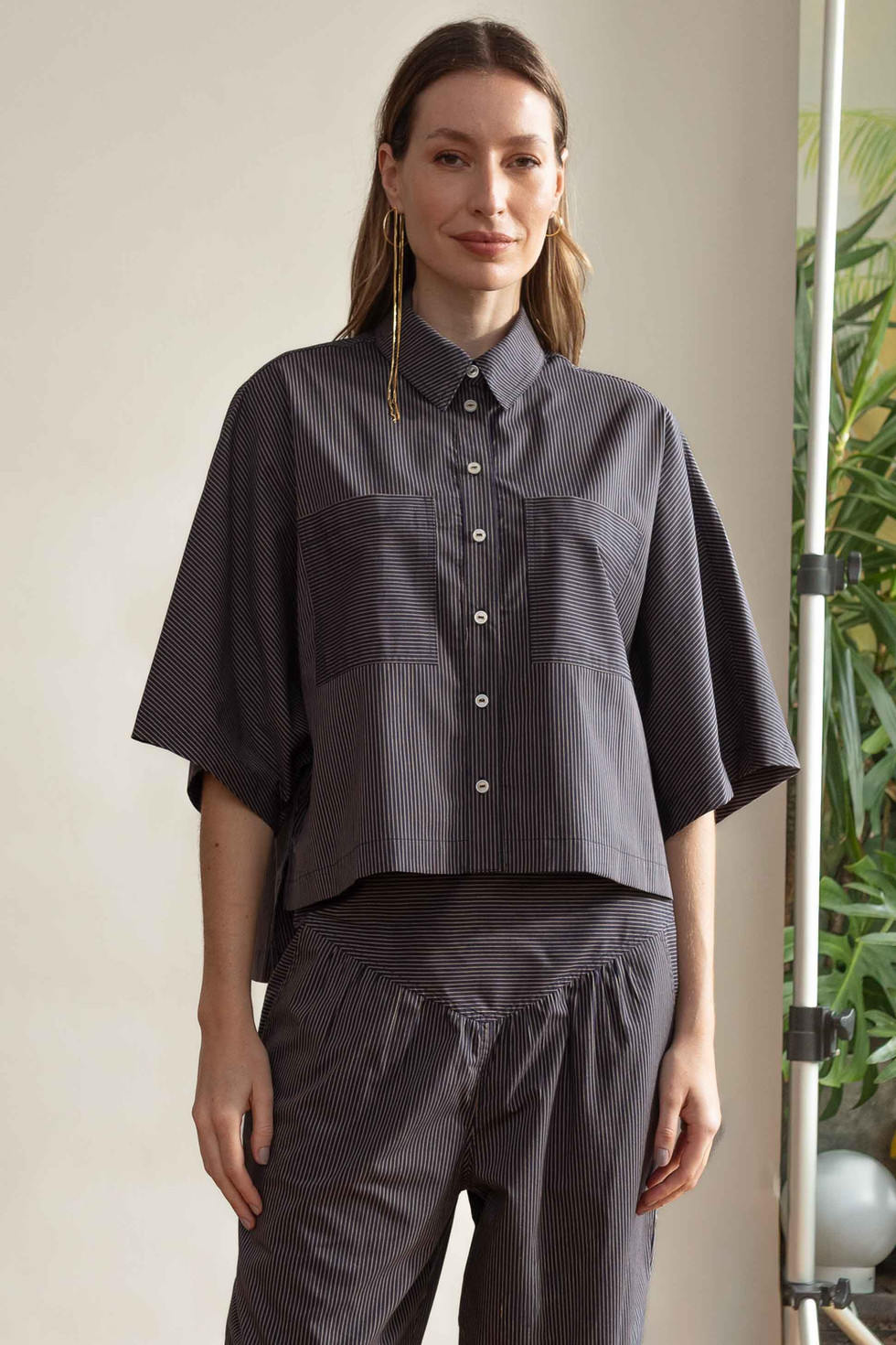 camisa ampla bolsos tricoline listrada fininha 100% algodão