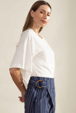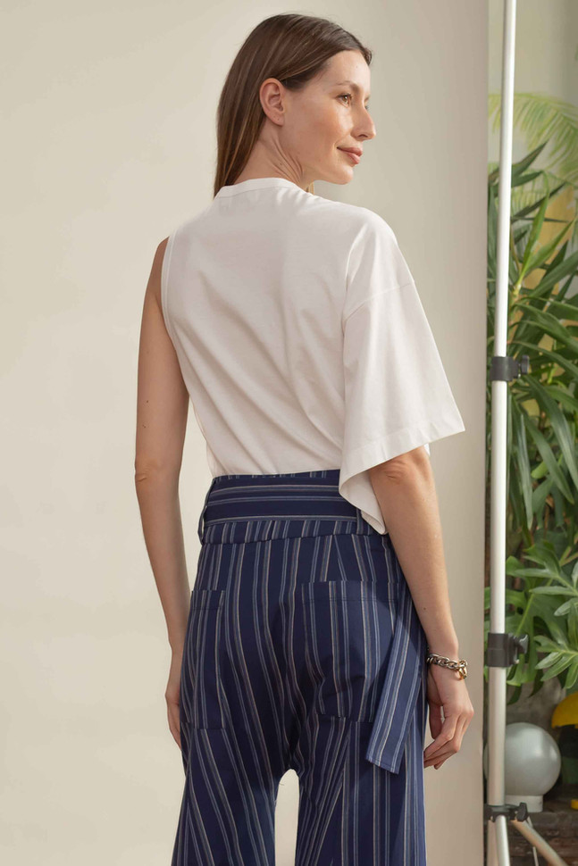 t-shirt manga assimétrica em malha algodão
